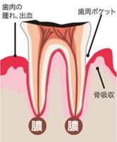 歯の内部の神経が入っていた空間が汚れて細菌が繁殖し、根の先端から押し出され、そこに膿が溜まっている状態を指す。