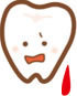 - 神経のある歯でも、歯に大きな衝撃がかかると、割れたりヒビが入ったりすることがあり、そこから細菌が侵入し、歯の根に袋を作ってしまう。